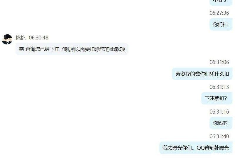 我在b体育因为银行卡问题,充值的3500元被系统冲正。当我打到5000元准备提款时,却迟迟不到账。等了三个多小时后,仍然没有收到款项,于是我联系了客服。结果他们告诉我,卡异常,钱已经退回,但要扣掉我的余额5000元。我同意让他们扣款,但之后再充值100元通过ebpay,打到3340元后,他们却不给我提款,将全部金额扣掉。 他们声称需要核实我的五笔存款,但实际上我根本没有那么多存款。无论账号里有多少钱,他们最终都会扣掉。找客服根本没有用,他们只是重复说需要扣款。最后,我的账户余额只剩下一毛钱。我充值并打到3340元的金额也被扣光了。如果你们有人打算去b体育玩,劝你们三思,因为你迟早会被坑得一干二净。