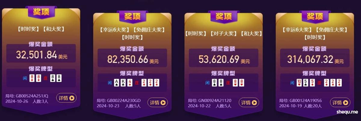 爆奖奖项:免佣庄、幸运6、时时奖